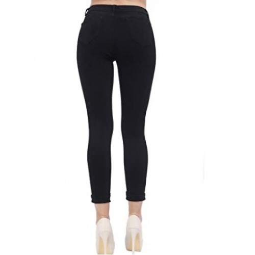Black (T015) Women's High Waisted Ripped Skinny Jeans Distressed Slim Fit Stretchy Juniors Denim Pants
