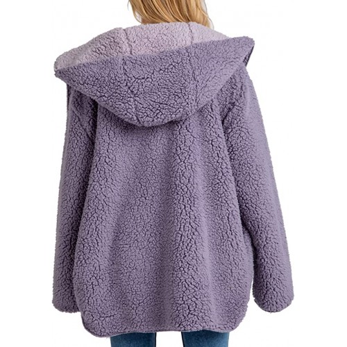 Women's Oversized Fuzzy Teddy Open Front Cardigan Coat